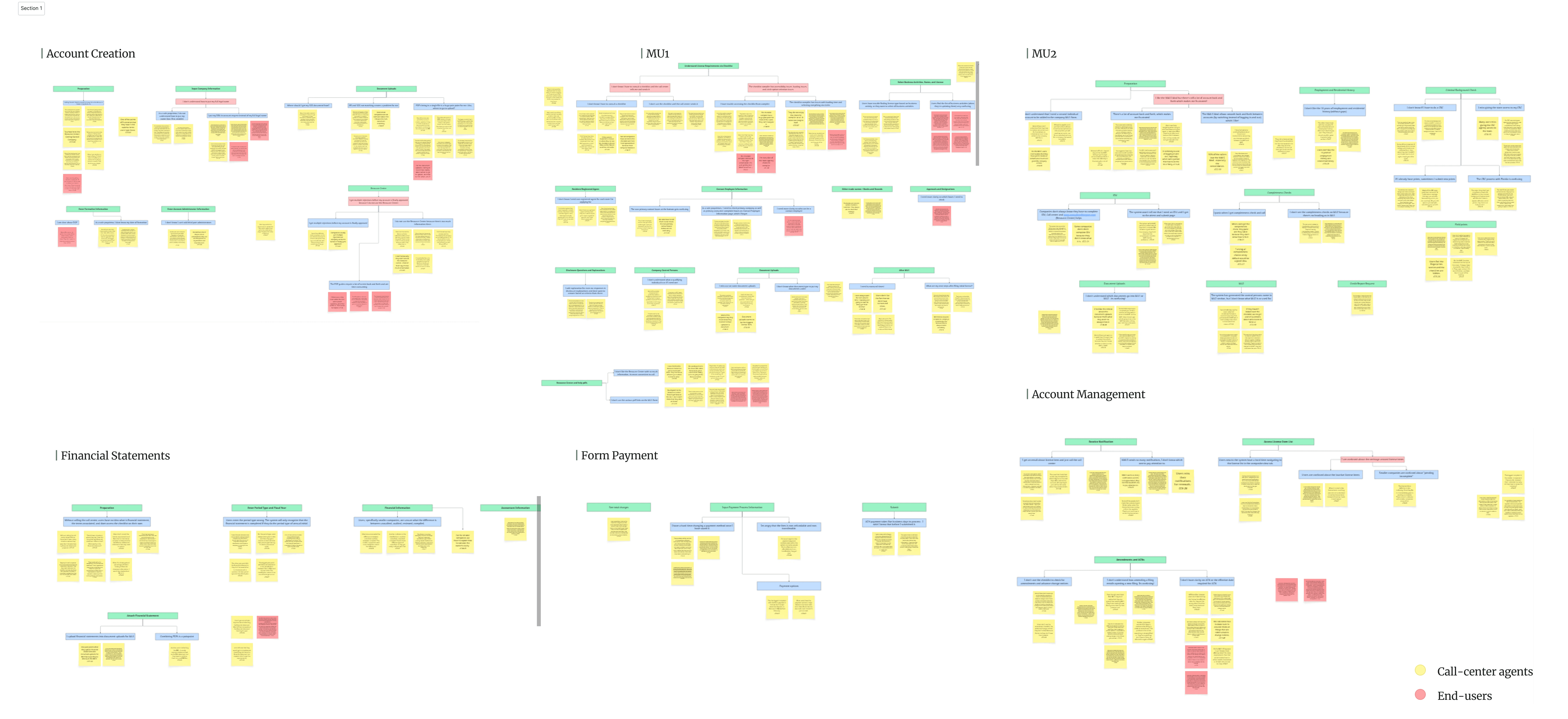 Using Miro, I organized all research insights under six key workflow categories. From there, I extracted user pain points and identified over 25 issues that directly informed six journey maps.