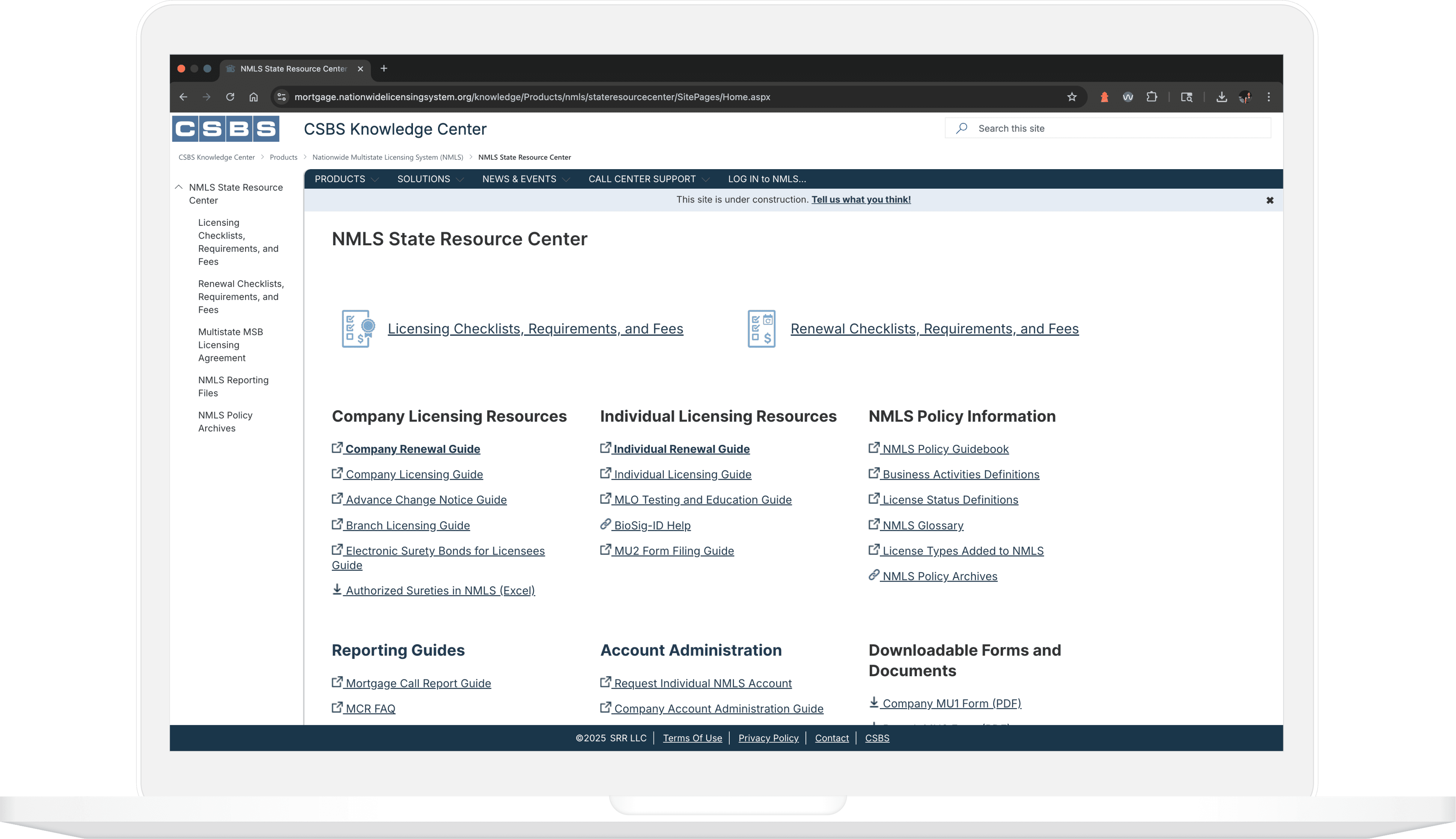 NMLS Resource Center (Before Redesign)