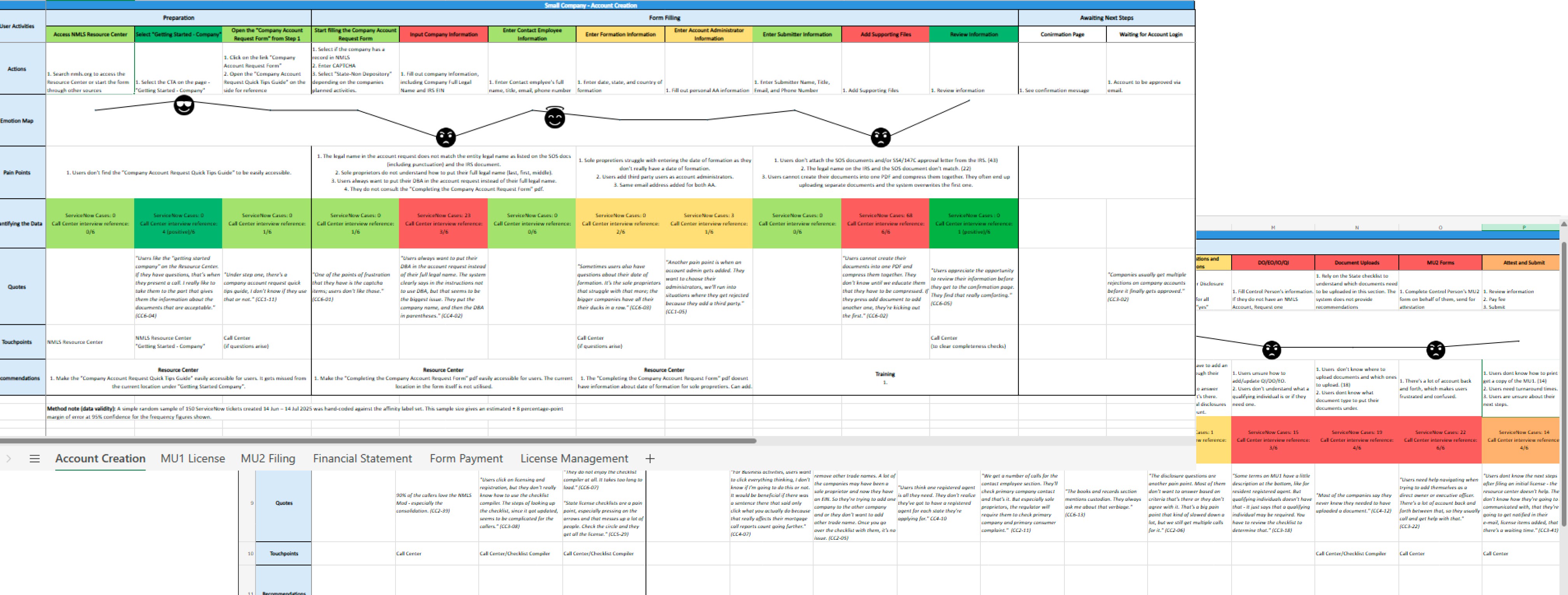 Pivot often: Real-world projects are rarely linear. We started with a vague goal of improving self-service for small company users, paused, and shifted to understanding their pain points. That detour uncovered insights that shaped key decisions and informed tree testing for the new NMLS Resource Center information architecture.