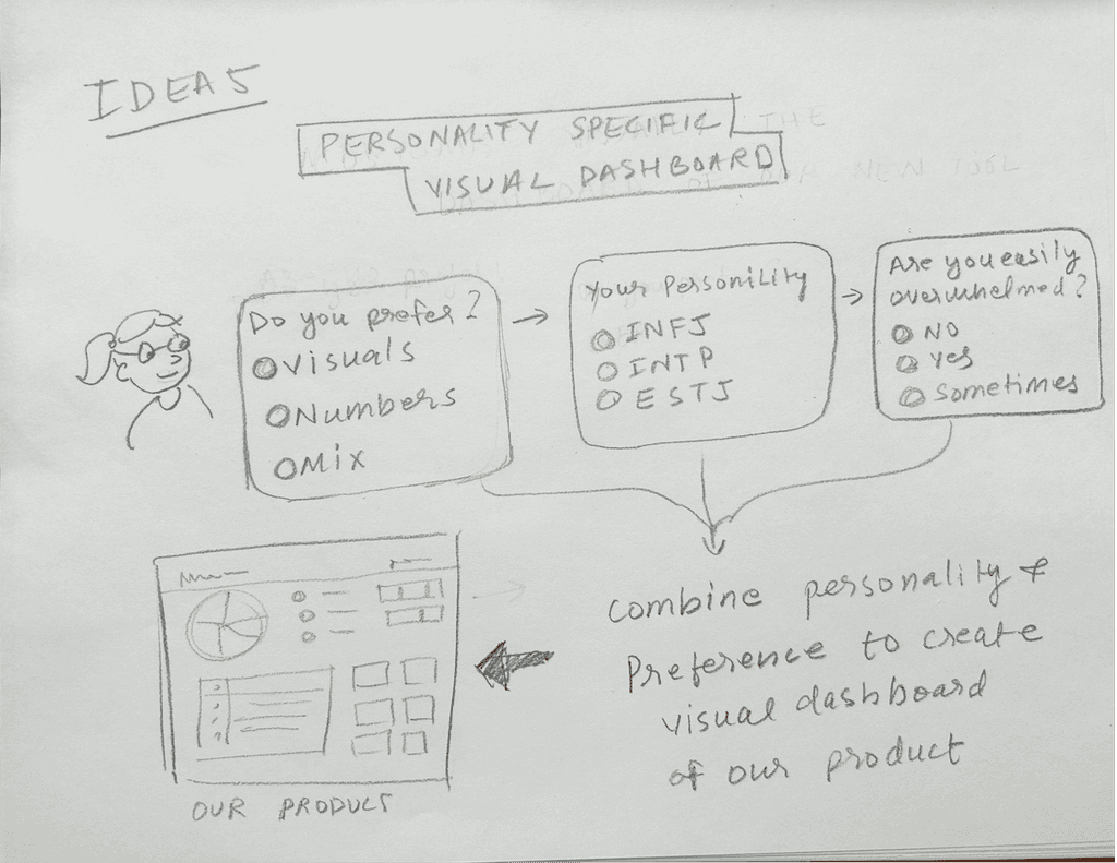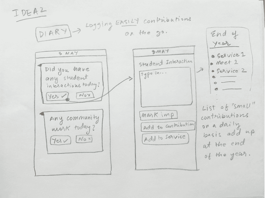 During the ideation phase, three of my ideas were modified and developed into our five design visions. I then advocated for listing the advantages and disadvantages of each vision, which helped us narrow our ideas down.